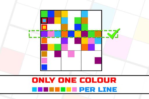 Only 1 Color Per Line: can you fill in the grid? The concept is very simple, a bit like a sudoku game: you have to fill in the grid, but you can only put the same color once per line. Are you clever enough to play this coloring game? If you are confident in your powers – you need to rey this one.